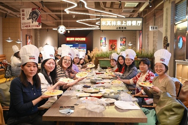 于3月6日,举办了“柔肩担重任,致敬她力量” 披萨DIY主题活动。娱乐城副院长张贺、行政办公室主任梁龙琪与四十余名女教职员工共同参与了活动。