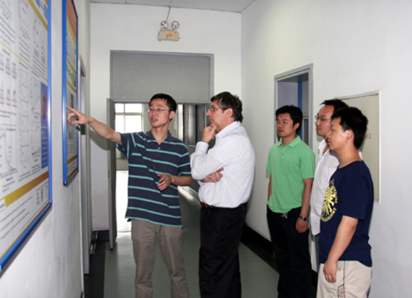 图2 中国科娱乐城2009年度“爱因斯坦讲席教授”获得者英国曼彻斯特大学A. K. Geim教授(2010年诺贝奖物理奖获得者)在金属所学术访问——向Geim教授介绍团队在Direct Z-scheme光催化材料研究工作。