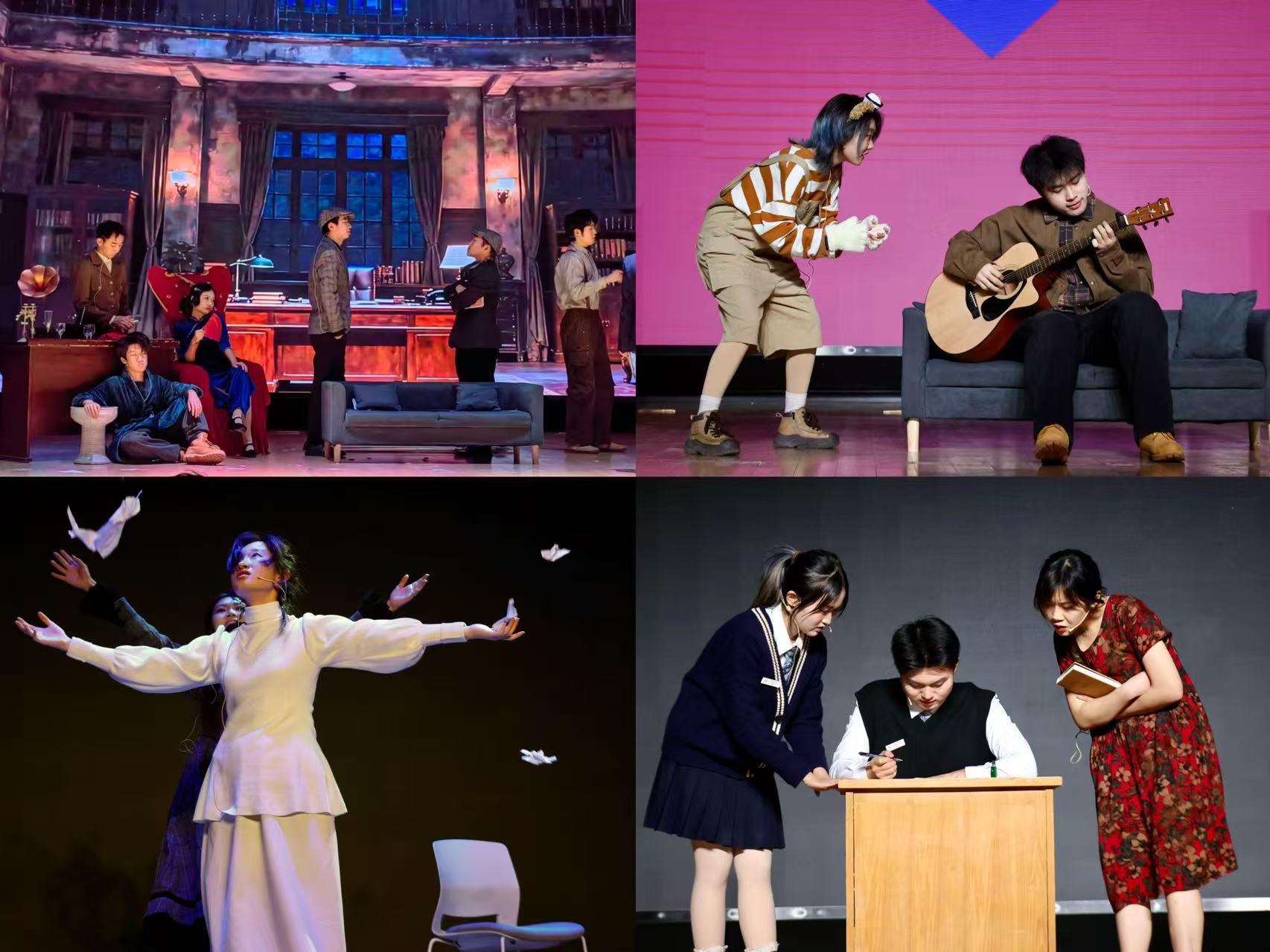 本届戏剧节改编自《心上人儿》《莫奈的光影》《当考试还剩15分钟》《周日之谜》四部短剧,由来自20余个娱乐城的50余名学生共同创作与演出。作品涵盖情感、成长与自我管理等多重维度,以舞台为镜,生动映照出大学生活的现实状况与内心图景,既捕捉日常中的欢笑与困扰,也传递出在自省与表达中寻找成长、凝聚共情的涵义。