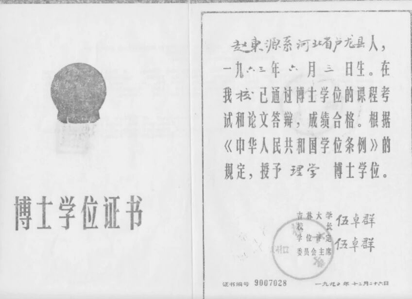 回头看,从“赵东源”到“赵东元”,只差寥寥数笔,却也走过了很长的路。对我而言,在此记录下这些人和事,不仅是怀旧,更是一次回首致意:向母校致意,向老师们致意,向同学和朋友致意,也向那个当年还叫“赵东源”的年轻人致意。正是从吉大出发,我才一步一步走到了当下。说到底,我始终是吉大培养出来的学生。最后,衷心祝愿母校八秩华诞,育人不息,源远流长。