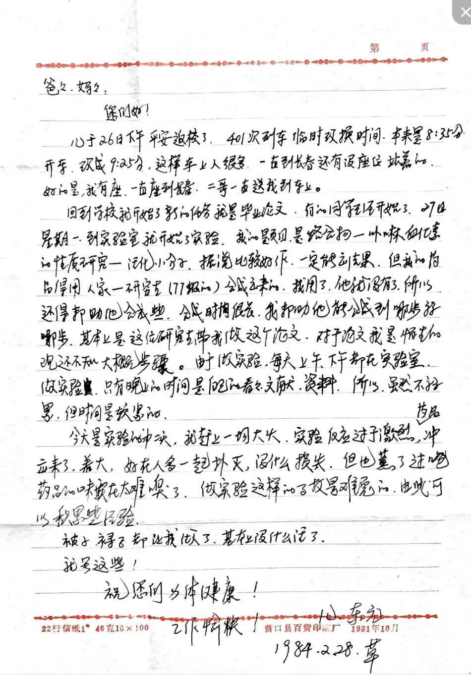 图4 1984年,写给父母的家书